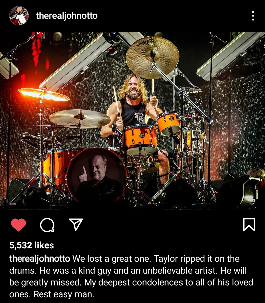 That drummers from all genres shared their grief this weekend is testament to the brotherly love drummers share. From Hawkins’ personal heroes such as Queen’s Roger Taylor, Metallica’s Lars Ulrich, and of course The Beatles’ Ringo Starr, to his contemporaries such as Rage Against The Machine’s Brad Wilk and Muse’s Dom Howard, to the next generation of drummers such as Paramore’s Zac Farro, Bring Me The Horizon’s Matt Nicholls and jazz prodigy JD Beck, his passing reverberated through the rhythm section of the entire music industry.